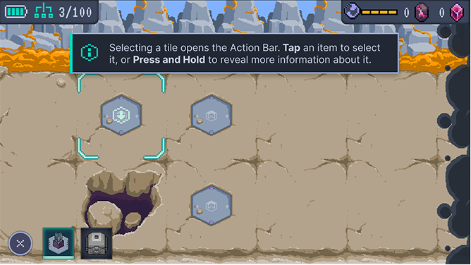 Later, we created a partially-animated visual prototype that allowed testers to experience limited slice of pre-determined gameplay actions in an early approximation of the Structs gameplay experience.